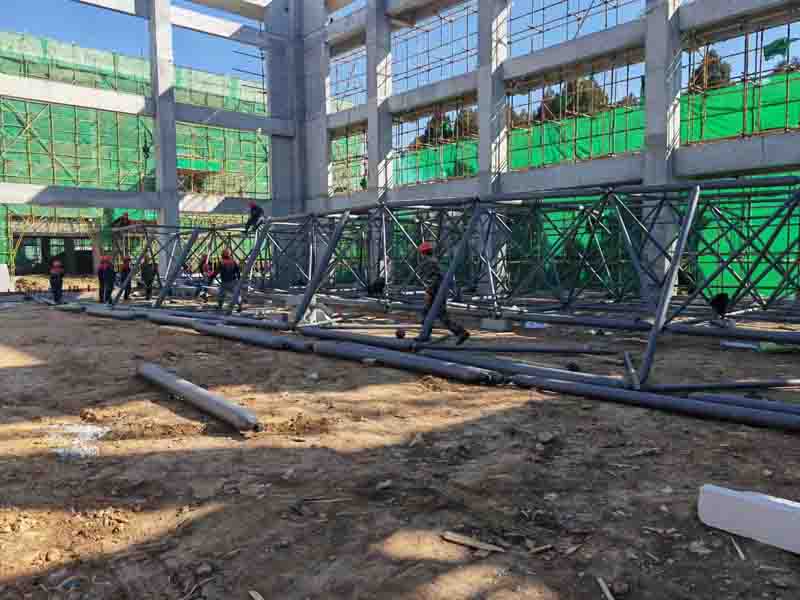 金天翼-章丘中學(xué)風(fēng)雨操場(chǎng)網(wǎng)架開始安裝