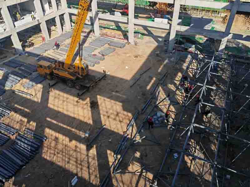 金天翼-章丘中學(xué)風(fēng)雨操場(chǎng)網(wǎng)架開始安裝